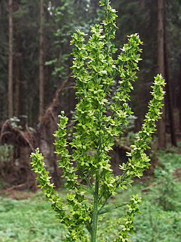 Veratrum lobelianum — багаторічна трав'яниста з товстим коротким кореневищем рослина родини лілійних. Стебло грубе, пряме, циліндричне, порожнисте, до 175 см заввишки, при основі оточене рештками старих листків, у верхній частині й у суцвітті пухнасте. Листки великі, спірально розміщені, численні, цілокраї, вздовж складчасті, звужені внизу в широкі піхви; нижні листки яйцевидно- або широко-еліптичні, коротко загострені, верхні — ланцетні, загострені. Квітки полігамні, зібрані в пірамідальну волоть; оцвітина проста, жовтувато-зелена, шестироздільна, з еліптичними, вгорі закругленими, по краю дрібнозубчастими, зовні опушеними частками. Плід — яйцевидно-тригранна коробочка. Цвіте у червні — липні.