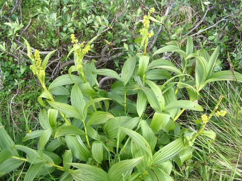 Багаторічна трав'яниста, з товстим коротким кореневищем рослина родини лілійних. Стебло пряме (60) 70—100 (130) см заввишки, циліндричне, порожнисте, у верхній частині пухнасте. Листки великі, спірально розміщені, численні, цілокраї, вздовж складчасті, голі, звужені внизу в широкі піхви; нижні листки широко-еліптичні, коротко загострені; верхні — лінійно-ланцетні або лінійні. Квітки полігамні, зібрані у вузьке волотеве суцвіття; оцвітина проста, темно-пурпурова, шестироздільна, з еліптичними, цілокраїми частками. Плід — яйцевидна тригранна гола коробочка. Цвіте у липні — серпні.