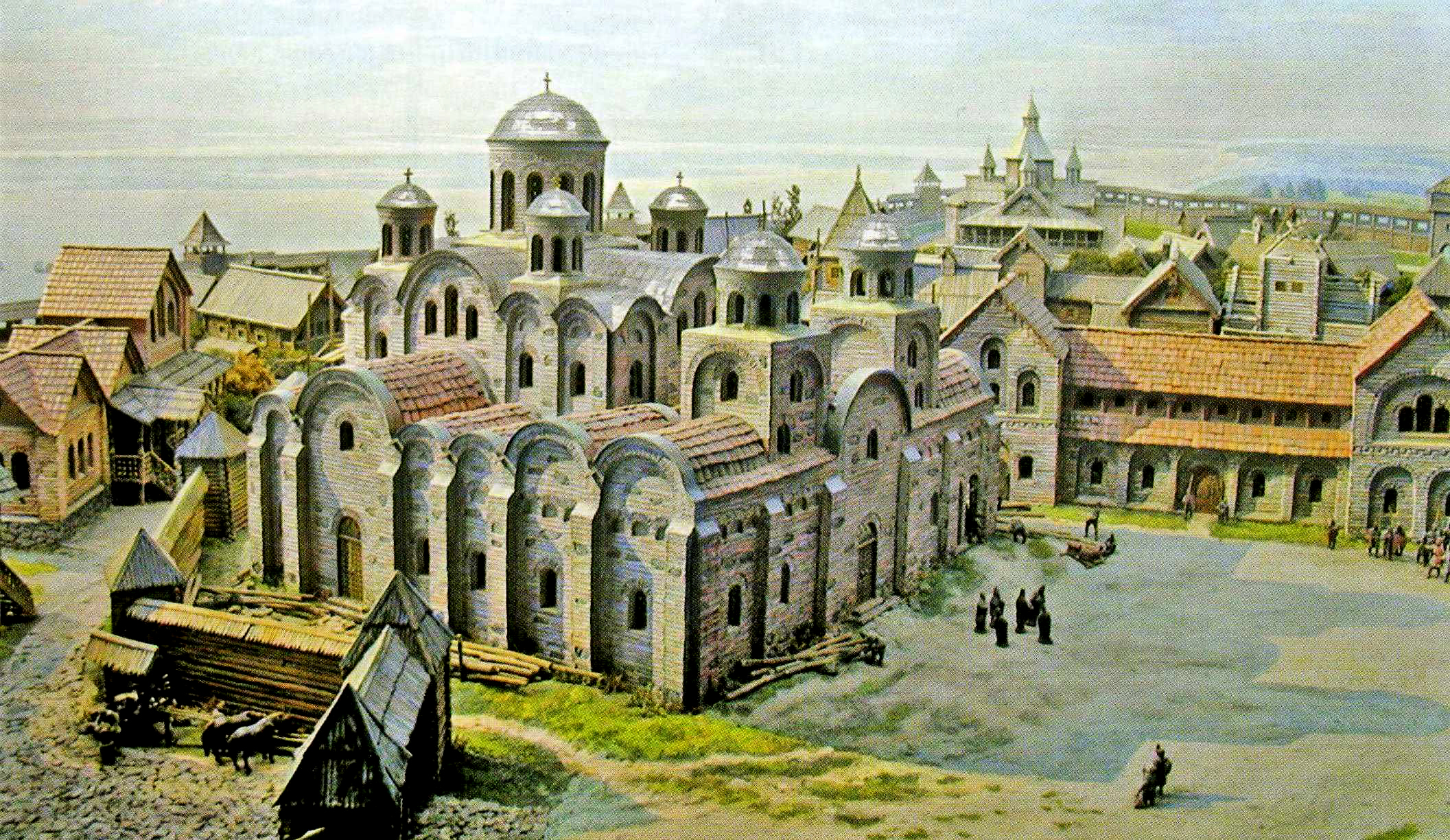 Назву свою храм отримав тому, що за розпорядженням князя Володимира десята частина всіх княжих доходів йшла на потреби Десятинної. Так було в Візантії, релігійну естафету якої ми підхопили. Київська церква приводила в захоплення - фрески, мозаїки, майолікові підлоги, безліч ікон, мармурове облицювання, шиферні різьблені плитки, фігурні карнизи ... При ній відкрили першу школу на Русі, яку увічнив в « Повісті минулих літ» Нестор - літописець. Навколо розташовувалися князівські палаци.