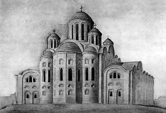 Більш-менш вцілілих прибудов церква Миколая. У своєму заповіті Могила залишив тисячу золотих на повне відновлення Десятинної .