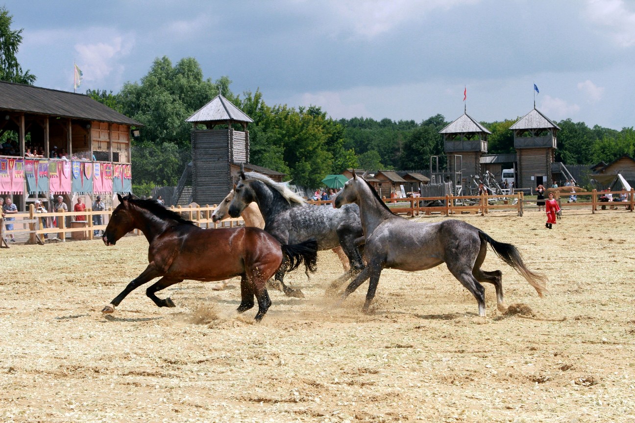Гості Парку побачать захоплюючі кінні трюки у виконанні княжих вершників. Вони їздитимуть на конях задом наперед і догори ногами, покажуть майстерність аланської їзди (одразу на двох конях) і стройової підготовки княжої дружини. Також витязі з княжої дружини будуть змагатися у верховій стрільбі з лука.