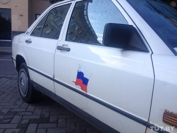 Вечером 20 июля Миша обнаружил свою изуродованную машину на стоянке возле Парка Горького. "Были пробиты два боковых колеса. На шиномонтаже мне сказали, что в колесах - три дырки шилом сделали. У меня машина яркая. Флажки российские на капоте, по бокам наклейки в цвет флага российского. Их тоже шилом сдирали. На шиномонтаже даже не удивились, рассказали, что я не первый такой. Мастер рассказал, что до нас человек на русских номерах приезжал с такими же тремя дырками, один в один. Тот клиент, оказалось, приехал заделывать дырки, а на следующий день ему еще раз пробили, и он снова был вынужден ехать менять шины", - рассказал TUT.BY Миша. В понедельник он написал заявление в Партизанский РУВД Минска.