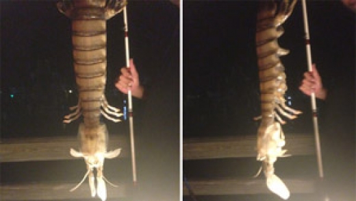 В американській Флориді Стів Барджерон рибалив, коли побачив, як його колега-сусід витягнув з океанських вод півметрове чудовисько. Чудовиськом виявилася креветка. Коли гіганта витягли з води, було зроблено декілька фотознімків, які були переслані в Комісію з охорони рибних запасів і дикої природи.