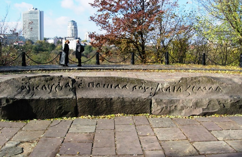 Недалеко від залишків Десятинної церкви та Музею історії України лежить загадковий камінь з написом на давньоруському: «Звідси пішла земля руська ...» Цей камінь не свідок більш ніж 1500-річної історії, як можна подумати.
