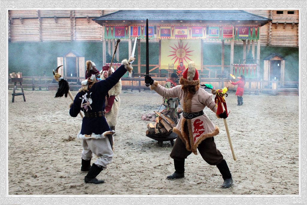 В післяобідню пору на ристалищі розгорнеться вистава «Сказання про мудрість князя Володимира Ясне Сонечко», в якій будезастосовано багатоспецефектів: каскадерськітрюки,поєдинкиз використаннямсередньовічної зброї, піротехнічне тавогнянешоу. Виставу «Сказання про мудрістькнязяВолодимираЯсноСонечко»можна подивитисяв усівихідні та святкові днідо 18січня 2015 року.