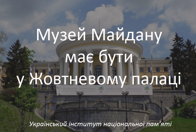 Український інститут національної пам’яті підтримує ініціативу депутатів Верховної Ради про створення музею Майдану на базі “Жовтневого палацу” («Міжнародного центру культури і мистецтв профспілок України»).