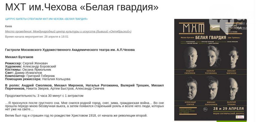 До Києва з гастролями Московського Художнього Академічного театру ім. А.П.Чехова приїде скандальний актор Михайло Пореченков. Участь актора у виставі анонсує афіша театру.