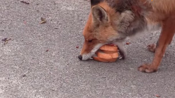 У Прип’яті поблизу Чорнобильської АЕС журналісти зняли на відео момент, як лисиця зробила собі бутерброд з хліба і ковбаси.