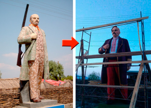 У Черкасах останнього Леніна перетворили на козака. Пам'ятник одягнувли у вишиванку й жупан та причепили йому на голову оселедець.