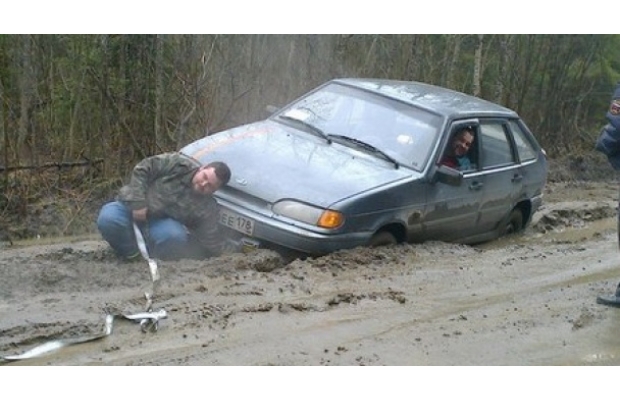 Уроійській Карелії кілька автомобілів, які брали участь у патріотичному автопробігу, присвяченому 70-річчю перемоги над німецько-фашистськими загарбниками, намертво застрягли в багнюці.