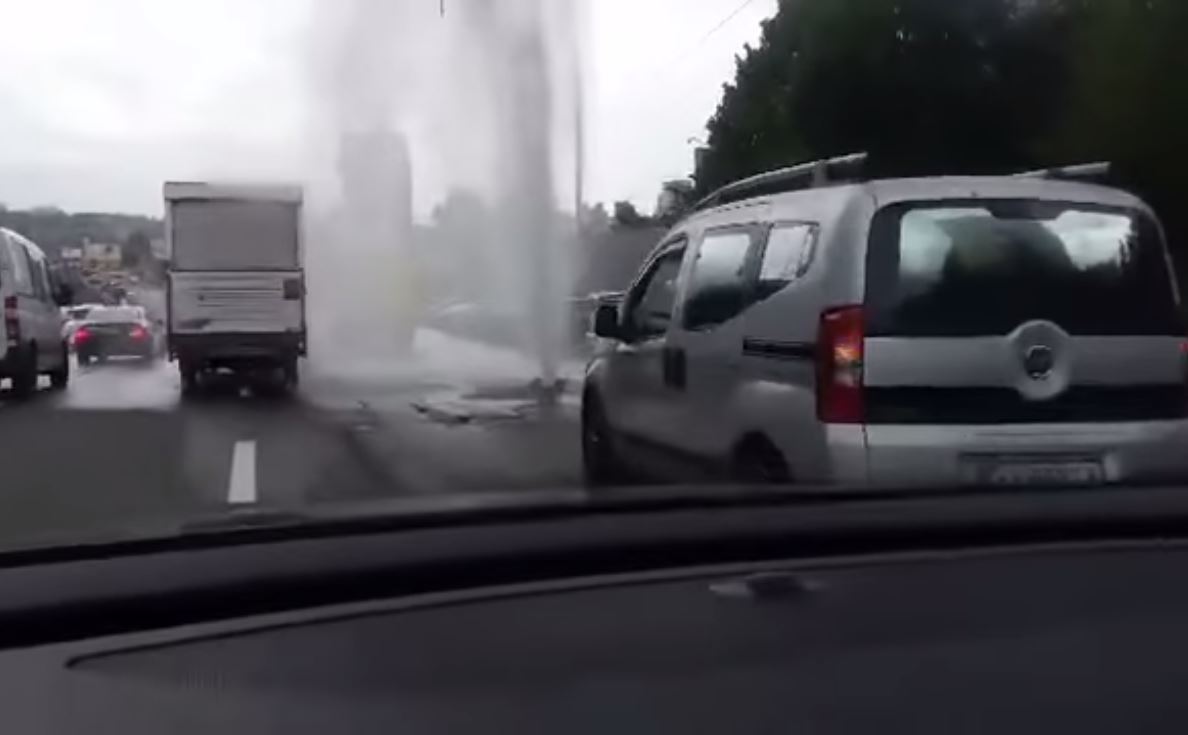 У середу кияни мали можливість спостерігати потужний "гейзер", що бив з-під землі на проспекті Науки. Як з'ясувалося, на одному з пожежних гідрантів зірвало запобіжник.
