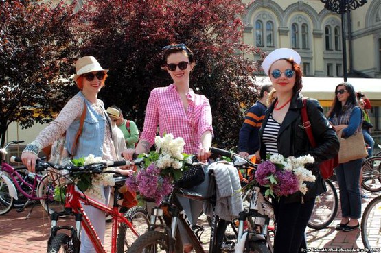 Дівчата вбиралися в повітряні сукні або національні костюми, так і в street-casual - велосипед йде під будь-який образ.