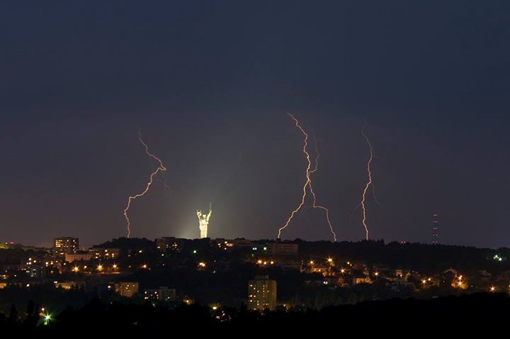 В основному кияни радіють нічний негоді, яку метеорологи обіцяли протягом усього дня. Бурхлива гроза і непередбачувані блискавки буквально заполонили інтернет.