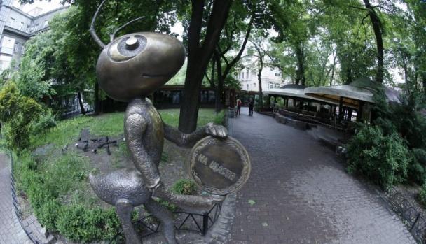 У Києві на вулиці Городецького біля кінотеатру "Україна" з'явилася бронзова скульптура мурахи.