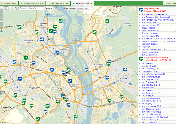 На сайті Головного управління Держсанепідслужби в Києві запрацювала інтерактивна карта моніторингу атмосферного повітря.