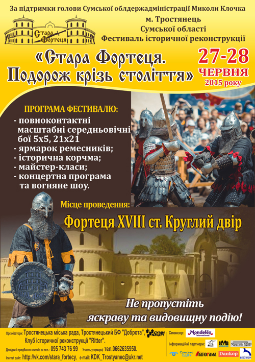 27-28 червня 2015 року в Тростянці (Сумська обл) відбудеться фестиваль «Стара фортеця. Подорож крізь віки».