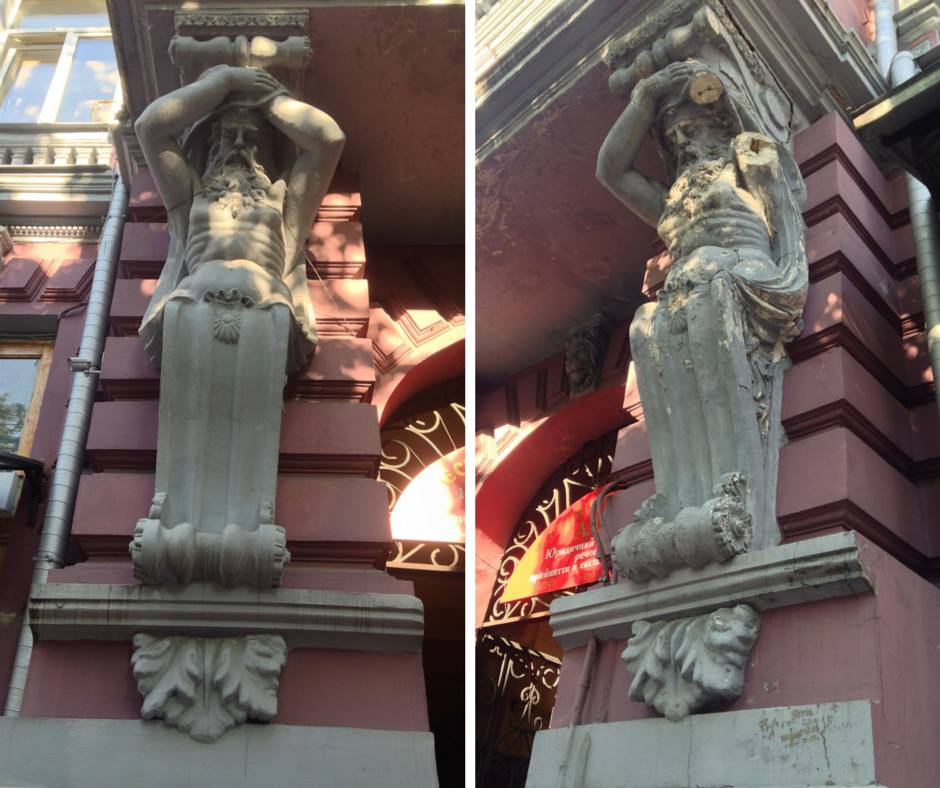 У правого атланта на старовинному будинку №45 по вулиці Володимирській у Києві відвалилася рука.