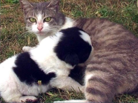 Господар кішки в шоці, каже, що навіть не уявляв, що таке взагалі можливо. Пологи у кішки були дуже складними. Тварина сильно страждала. Сусіди, до речі, списують таку аномалію на радіацію. Проте фахівці не поспішають погоджуватися з такою теорією: вони стверджують, що якби кішка і правда отримала опромінення радіацією, то потомство народилося б з явними відхиленнями або з аномаліями.