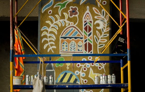 Яскравими фарбами Вабік зобразив мечеті, будинки, хмари і квіти, повідомляє dt.ua.