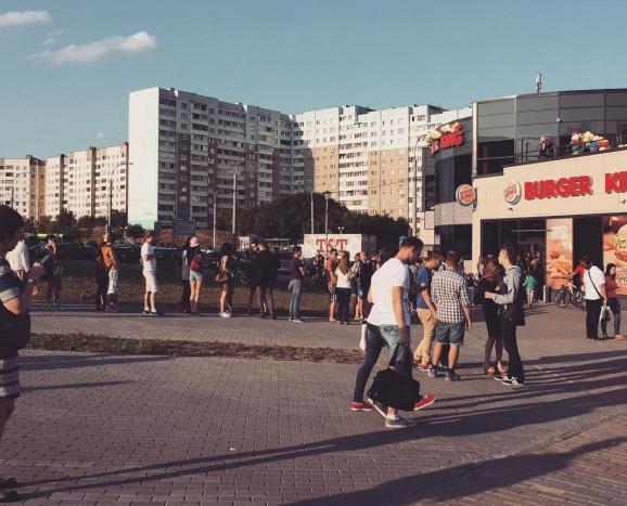 У столиці Білорусії 9 липня відкрився перший у країні ресторан Burger King, водночас у соцмережах з'явилися фотографії довгих черг і людей, що виносили у бідонах доступну в необмеженій кількості колу