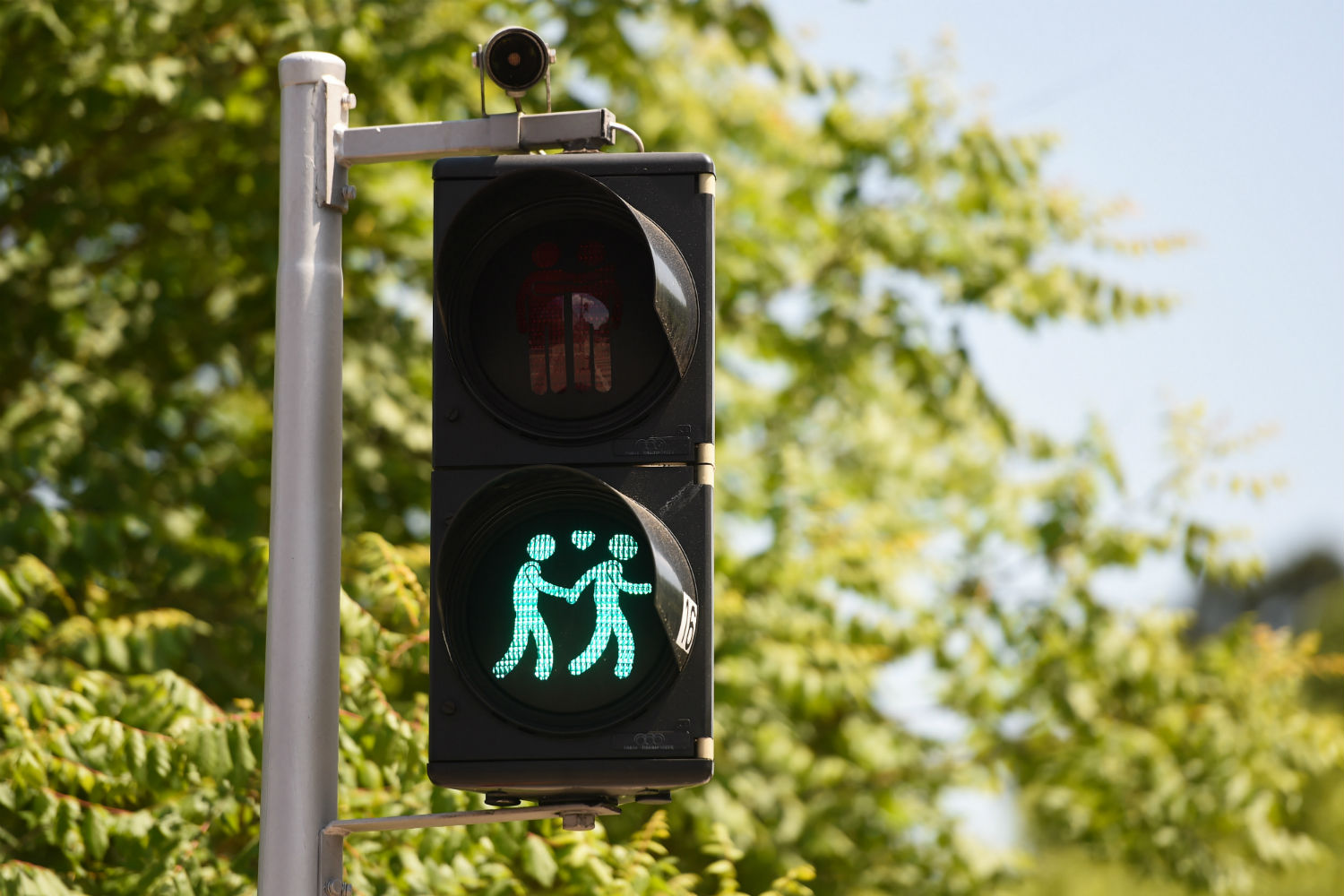 Вперше гей-світлофори були встановлені у Відні в травні 2015 напередодні "Євробачення". Через популярність світлофорів серед городян влада вирішила не демонтувати їх після конкурсу, як планувалося спочатку.