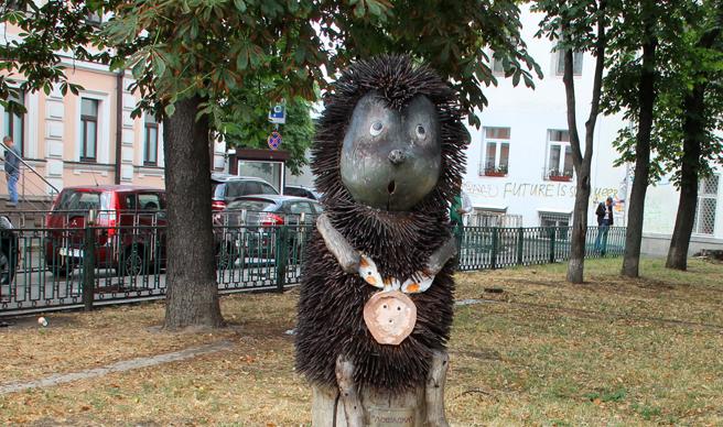 Скульптуру "Їжачок у тумані", розташовану у сквері на вулиці Рейтарській у Києві, обіцяли демонтувати на початку липня. Ця новина збентежила киян: навколо Їжачка з'явилися плакати і малюнки, в яких мешканці міста закликають врятувати міського улюбленця від вандалів і не дати виїхати з центру міста.