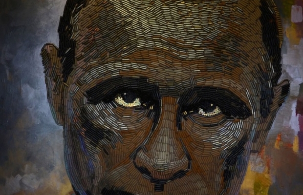 Українська художниця Дар'я Марченко створила картину "Обличчя війни", на якій гільзами викладено портрет президента РФ Володимира Путіна.