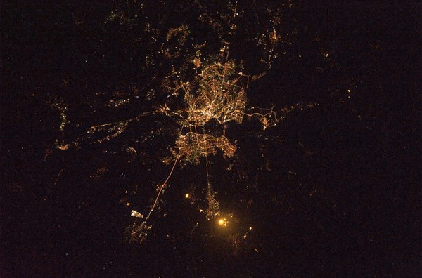 На світлині можна чітко розглянути основні магістралі міста, освітлені мости і скупчення найяскравіших зон у центрі столиці.