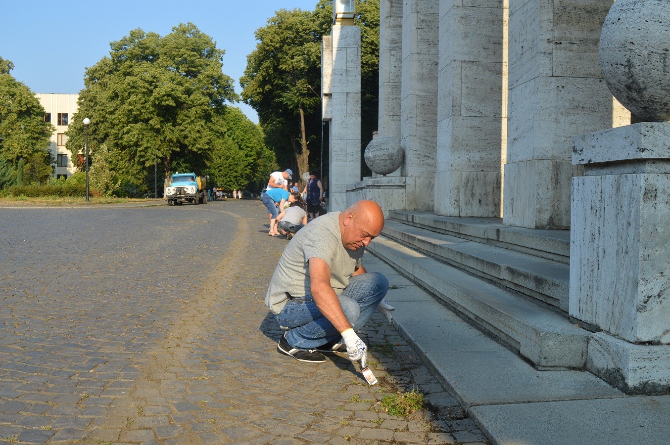 25 липня голова Закарпатської ОДА Геннадій Москаль в джинсах і футболці разом з працівниками адміністрації та обласної ради вийшов прибрати територію навколи будівлі ОДА.