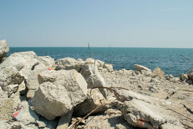 Cтіна перебувала біля недобудованого житлового комплексу «Морська симфонія» і відгороджувала від громадськості приблизно стометрову ділянку плит. Стіна була оббита колючим дротом.