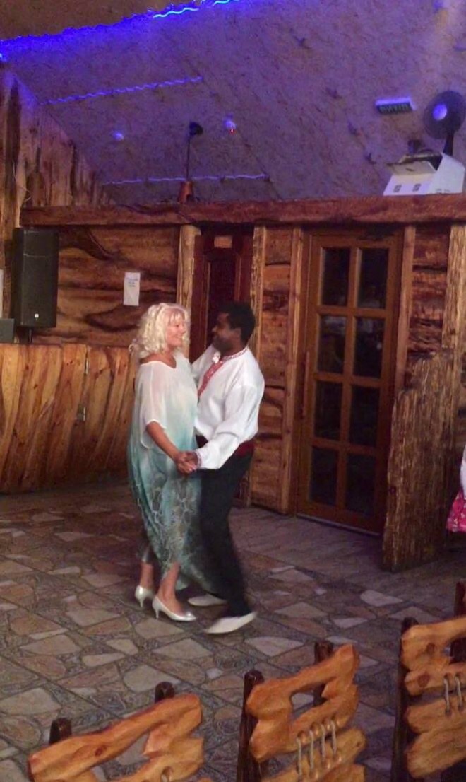 Цікаво, що 25 років тому чоловік пообіцяв дружині, що на ювілей знайде африканця, який подарує їй квіти, шампанське і танок. Свого слова він таки дотримав.