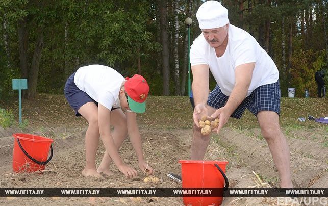 Президент Білорусі Олександр Лукашенко разом із молодшим сином у неділю збирав картоплю на території своєї офіційної резиденції "Дрозди".
