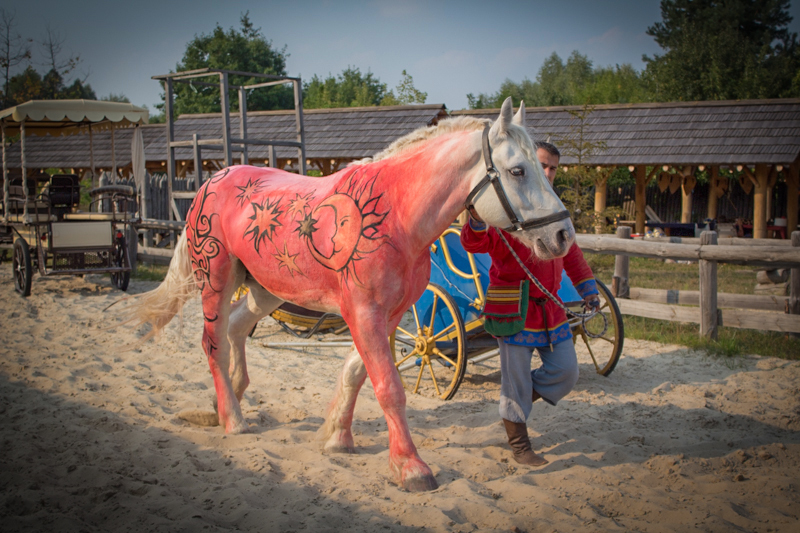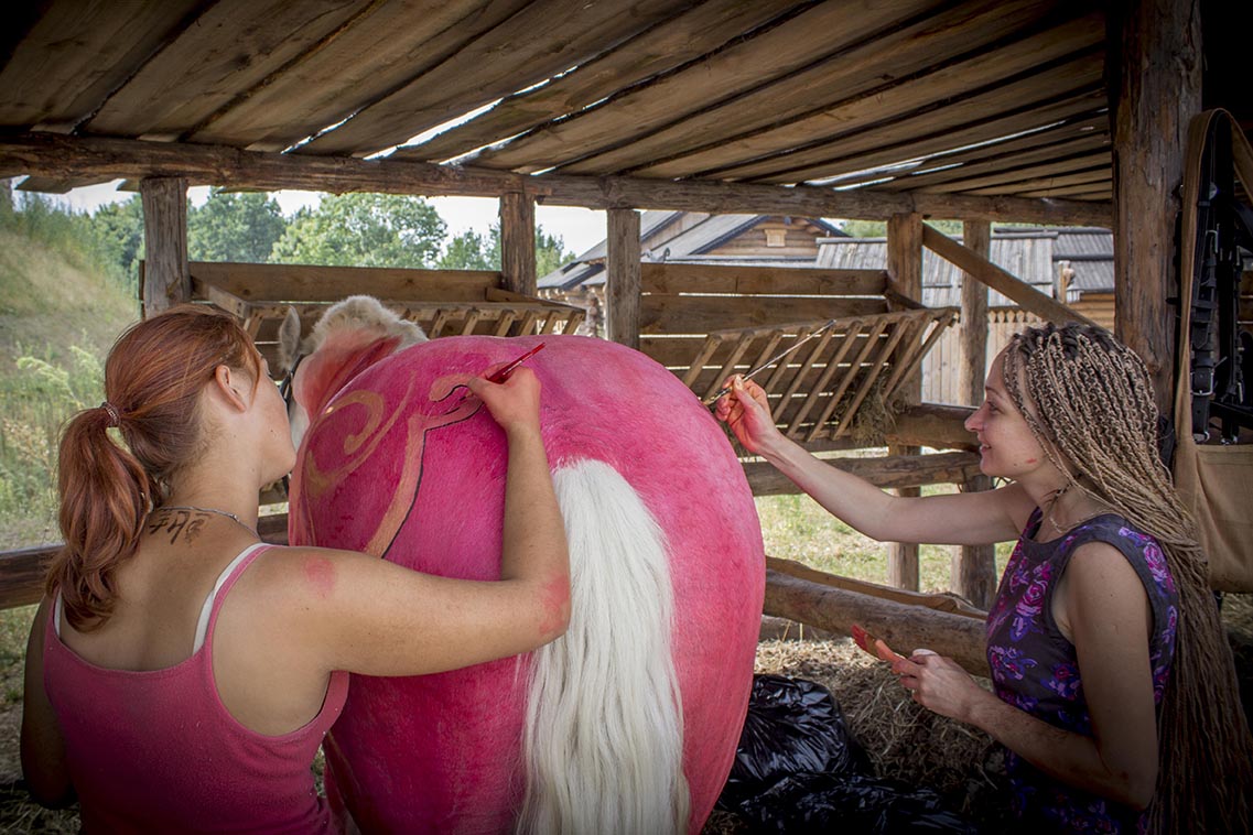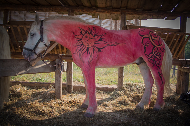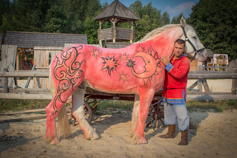 Крім людей, в цей день митці також розмалювали величезного білого коня Ратибора першеронської породи з Княжої конюшні Древнього Києва.