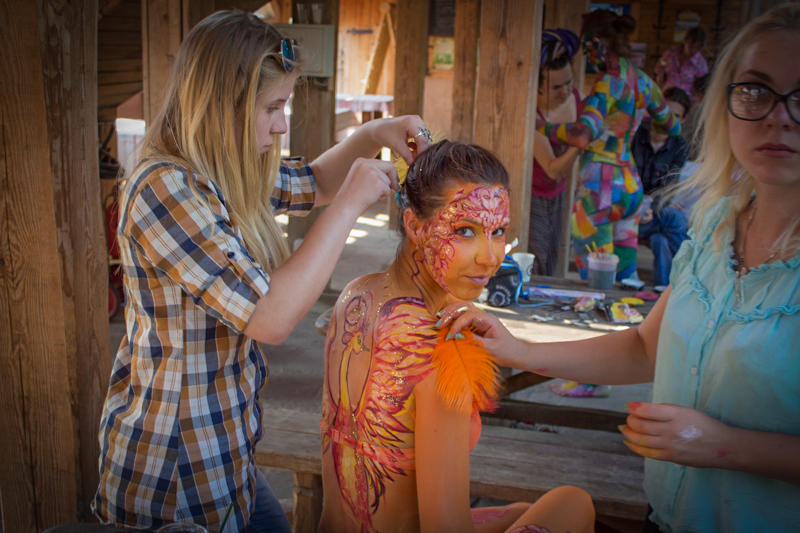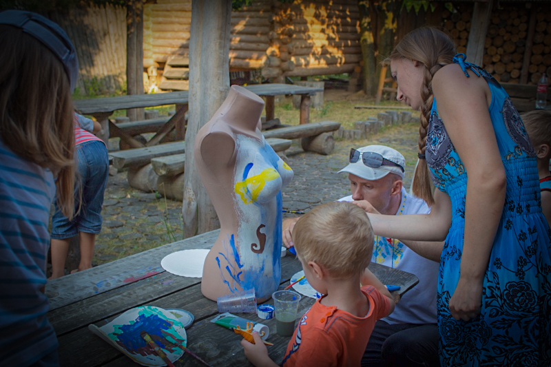 Поки художники творили тимчасові шедеври на тілах моделей, гості Древнього Києва змагалися у власному конкурсі: кілька сімей повинні були розмалювати фарбами манекени. Результат звичайно не порівняти з творіннями художників професіоналів, але процес був захоплюючим.