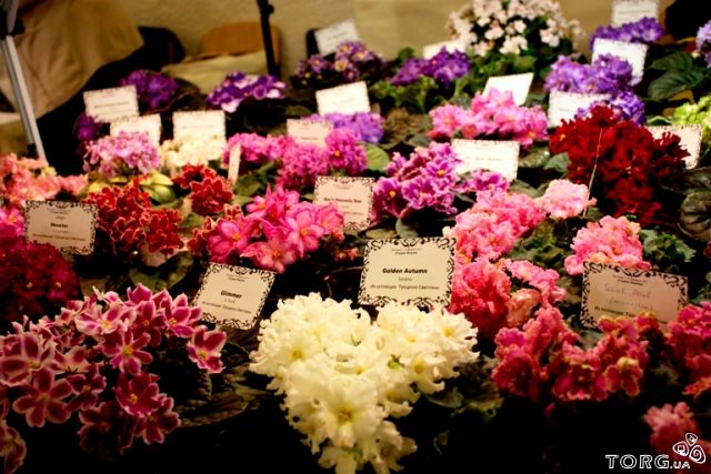 На виставці будуть представлені понад 300 різновидів квітучих фіалок (сенполій) та інші кімнатні рослини (стрептокарпуси, бегонії, епісція).