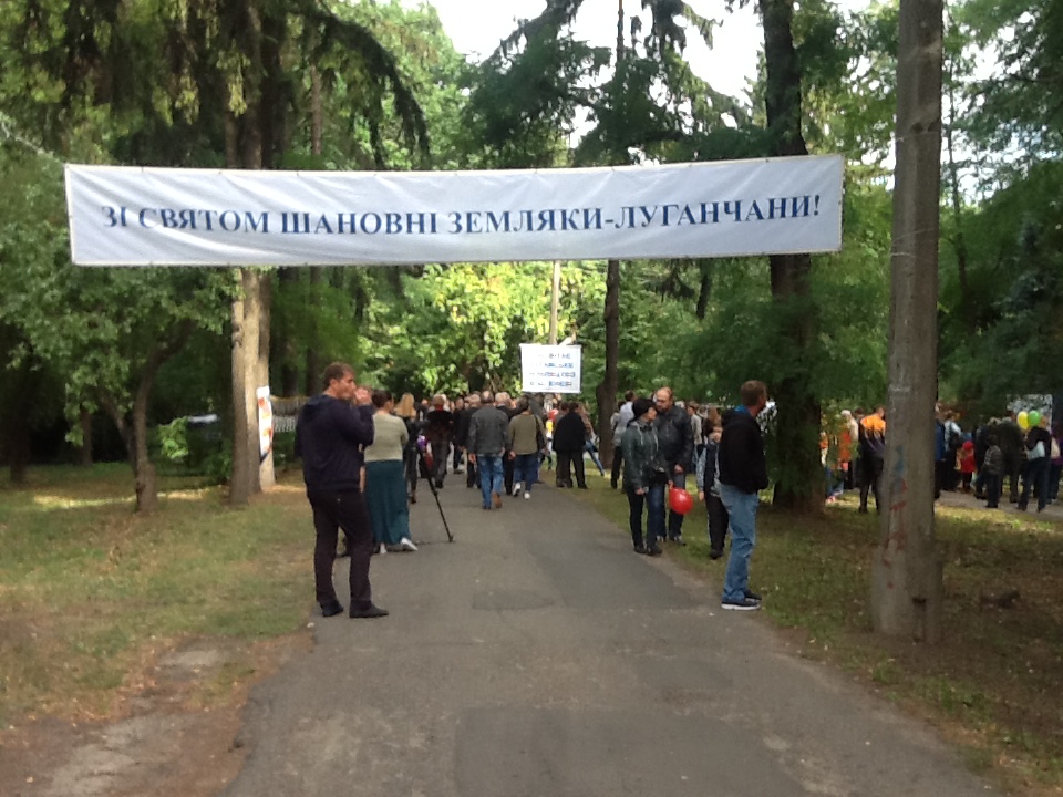"Сьогодні ми не вдома, не в рідних будинках, але ми разом. Дорогі луганчани, ми вітаємо всіх зі святом нашого міста", - сказав В.Горан.