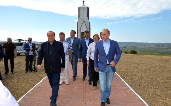 У мережі з'явилися фото, як президент РФ Володимир Путін та екс-прем'єр Італії Сільвіо Берлусконі покладають квіти біля пам'ятника сардинським солдатам в окупованому Севастополі.