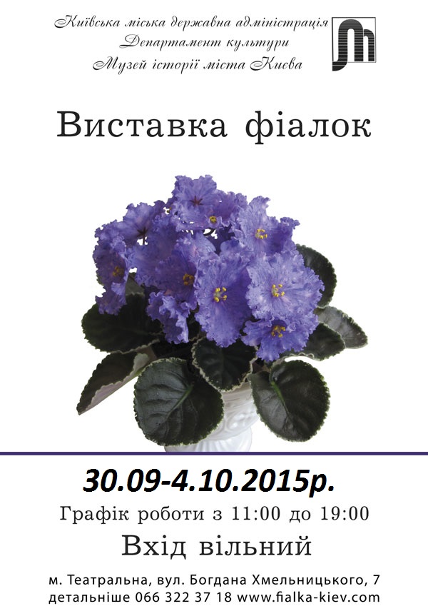 З 30 вересня по 04 жовтня 2015 р. В Музейно-виставковому центрі «Музей історії Києва» відбудеться відкриття виставки фіалок, присвяченій Дню Вчителя.