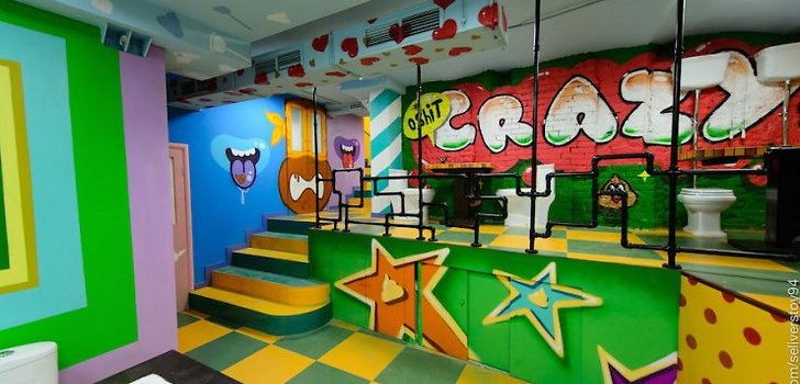 У Москві, на вулиці Арбат відкрилося тематичне туалетне кафе Crazy Toilet, повідомляється на сайті проекту. Замість звичайних стільців там стоять унітази, столи замінили фаянсові ванни, а замість посуду використовують зменшені копії унітазів, пісуарів і ванн.