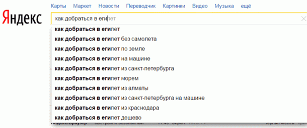 У пошуковій системі Yandex найпопулярніші запити - про трансфер до Єгипту без використання літака.