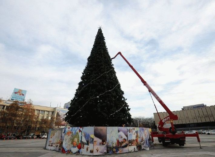 На Театральній площі Краснодара перед будівлею міської адміністрації з'явилася головна новорічна ялинка міста, серед прикрас якої є зображення постапокаліптичної Москви.