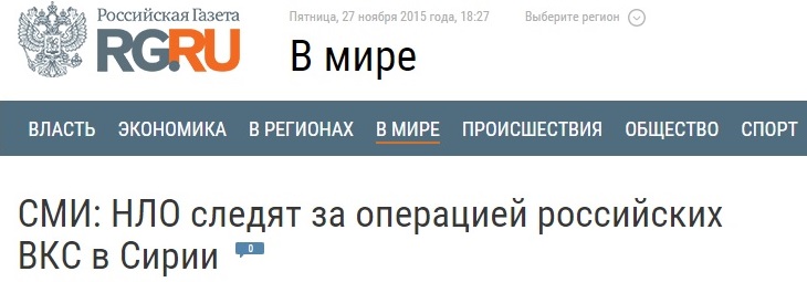 Видання російського уряду звернуло увагу на заголовок таблоїду "Два НЛО стежили за російськими ударами в Сирії" і винесло таке твердження в заголовок своєї статті.