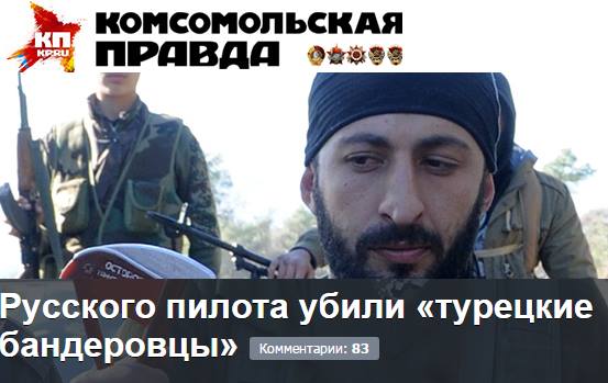 "Комсомольська правда" опублікувала новину, в якій говориться, що пілота збитого російського винищувача Су-24 вбили "турецькі бандерівці".