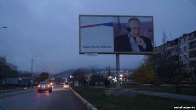 У Феодосії білборд із портретом президента Росії Володимира Путіна забрискали чорною фарбою.