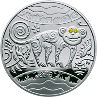 На аверсі монети розміщено: угорі малий Державний Герб України, у центрі в оточенні стилізованого рослинного орнаменту - номінал 5 гривень. На реверсі монети в зображено в мавпу, очі якої оздоблено кубічними оксидами цирконію жовтого кольору.