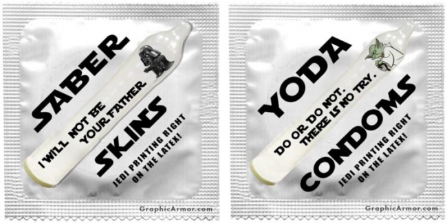 Британська компанія Graphic Armor, яка спеціалізується на виробництві презервативів та іграшок для дорослих, вдало скористалася модним трендом та випустила серію засобів контрацепції за мотивами "Зоряних війн".