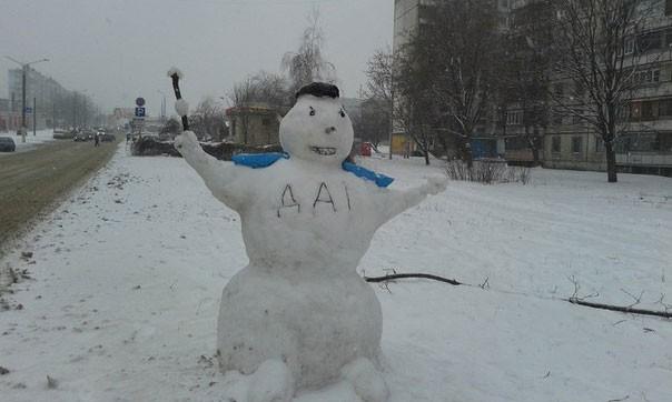 Сніговика з написом "ДАІ" на грудях, в головному уборі і з символічними погонами встановили біля торговельно-розважального центру "Україна".