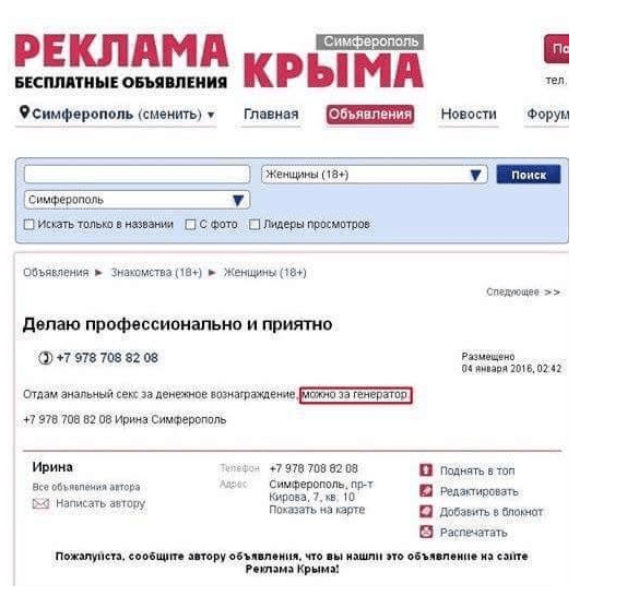 Одне з електронних оголошень, розміщених в Сімферополі, показує наскільки кепські умови і рівень життя на знеструмленому півострові.