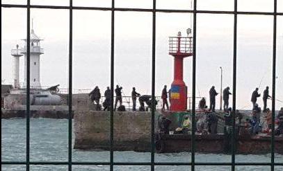 При цьому численних рибалок, які як завжди ловили там в цей час рибу, аж ніяк не бентежили "заборонені" в Криму кольори.