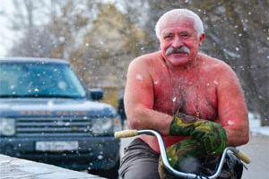 Як передає кореспондент NDNews, чоловік схожий на телеведучого Леоніда Якубовича. Деякі навіть впевнені, що це Якубович і є. Інші просто захоплюються його загартованістю.